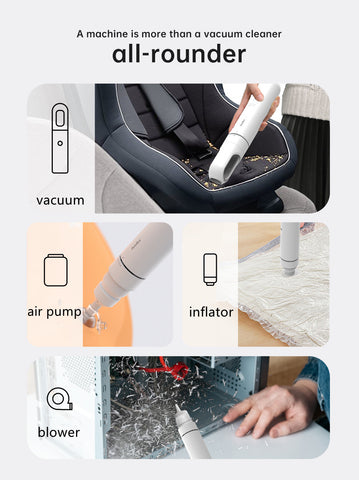 It integrates vacuuming, inflating, vacuum pumping and blowing in one, giving the car vacuum cleaner more possibilities.